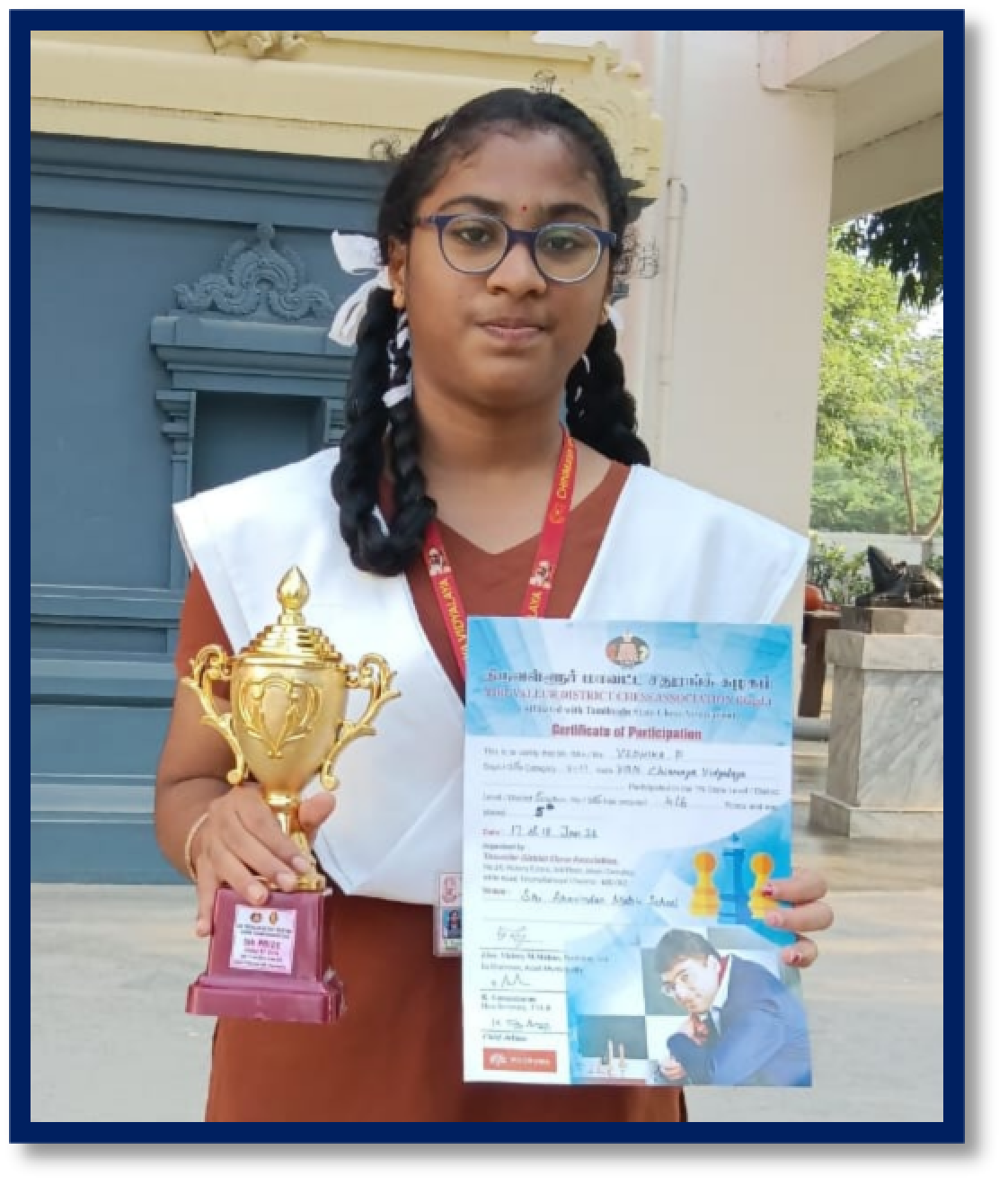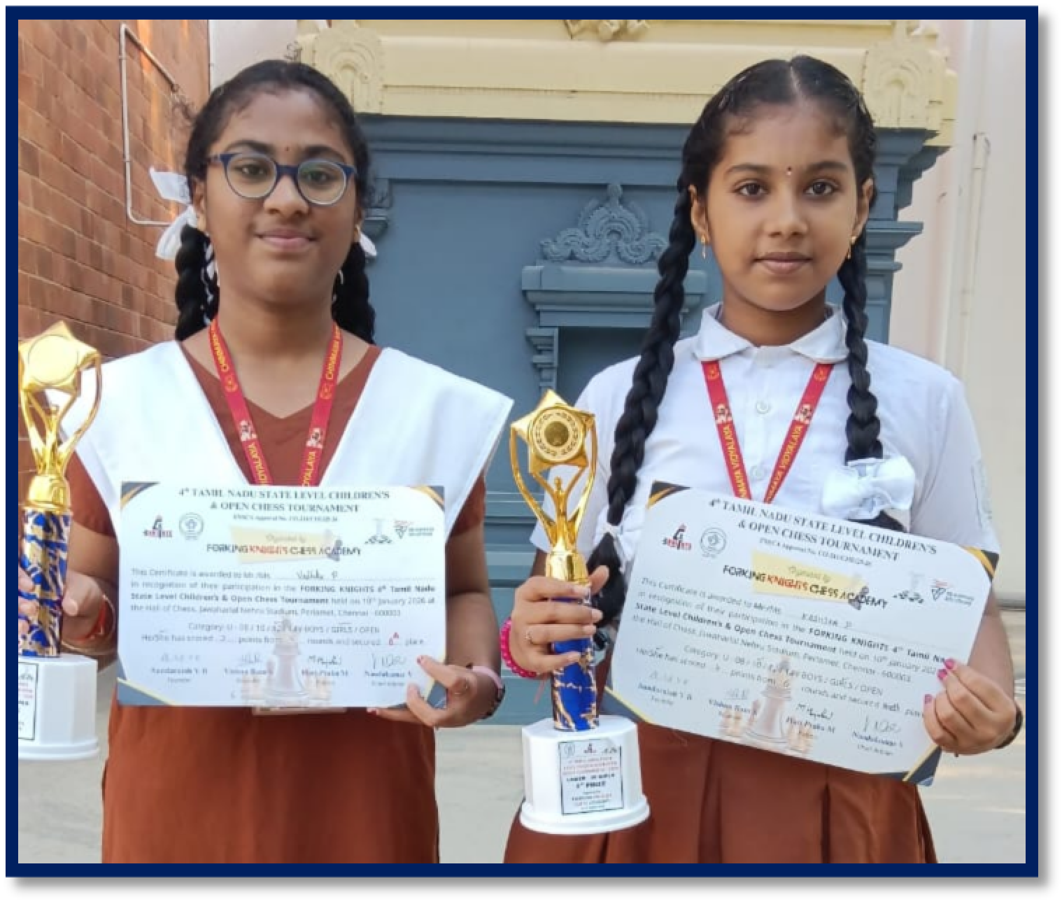 VEDHIKA P of Class VII A also secured 5th position in the Under-11 Girls category in a chess