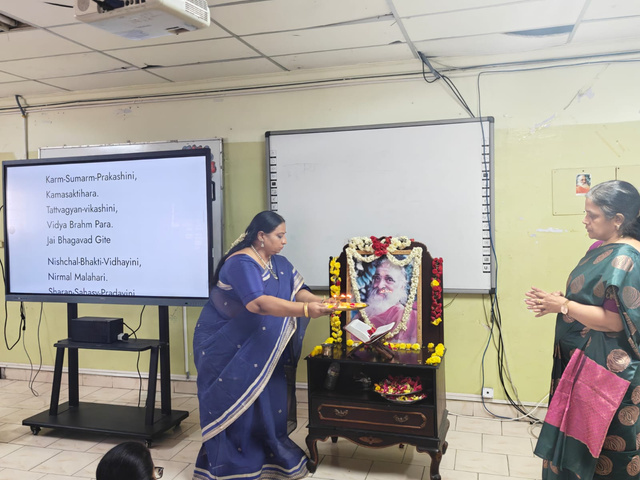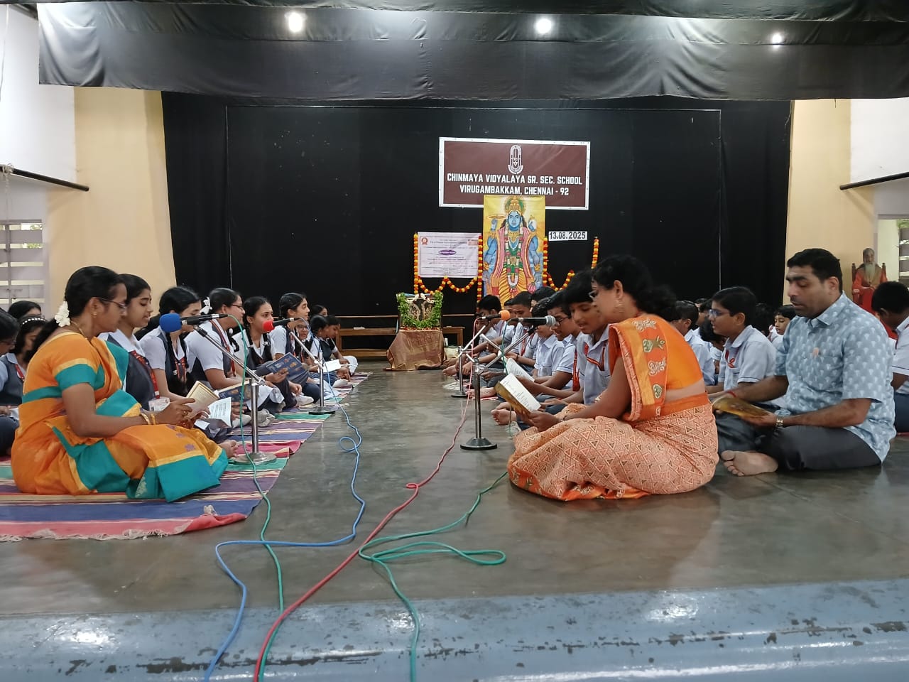 As a sacred prelude to the Maha Aradhana Day of our Pujya Gurudev, our Vidyalaya upholds the cherished tradition of Bhagavad Geeta chanting. Beginning on 14th July, teachers recited one chapter each day, completing all eighteen chapters by 2nd August, in time for the Aradhana Day on 3rd August.