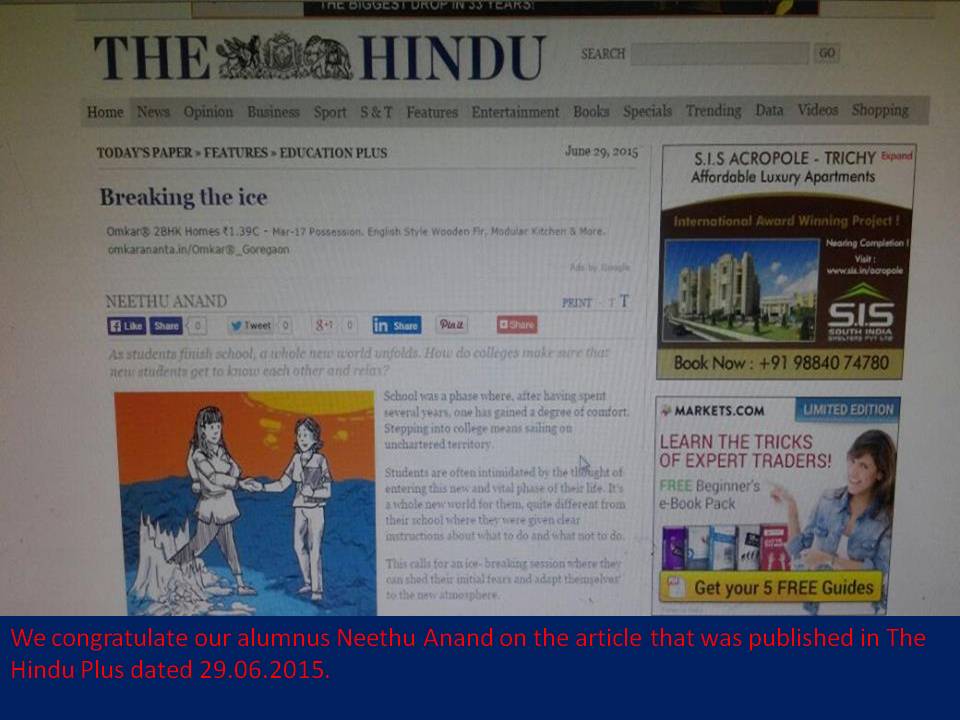 Mr. M Heerendra Kannan , who passed out our institution in the year 2012 was a alumnus of school