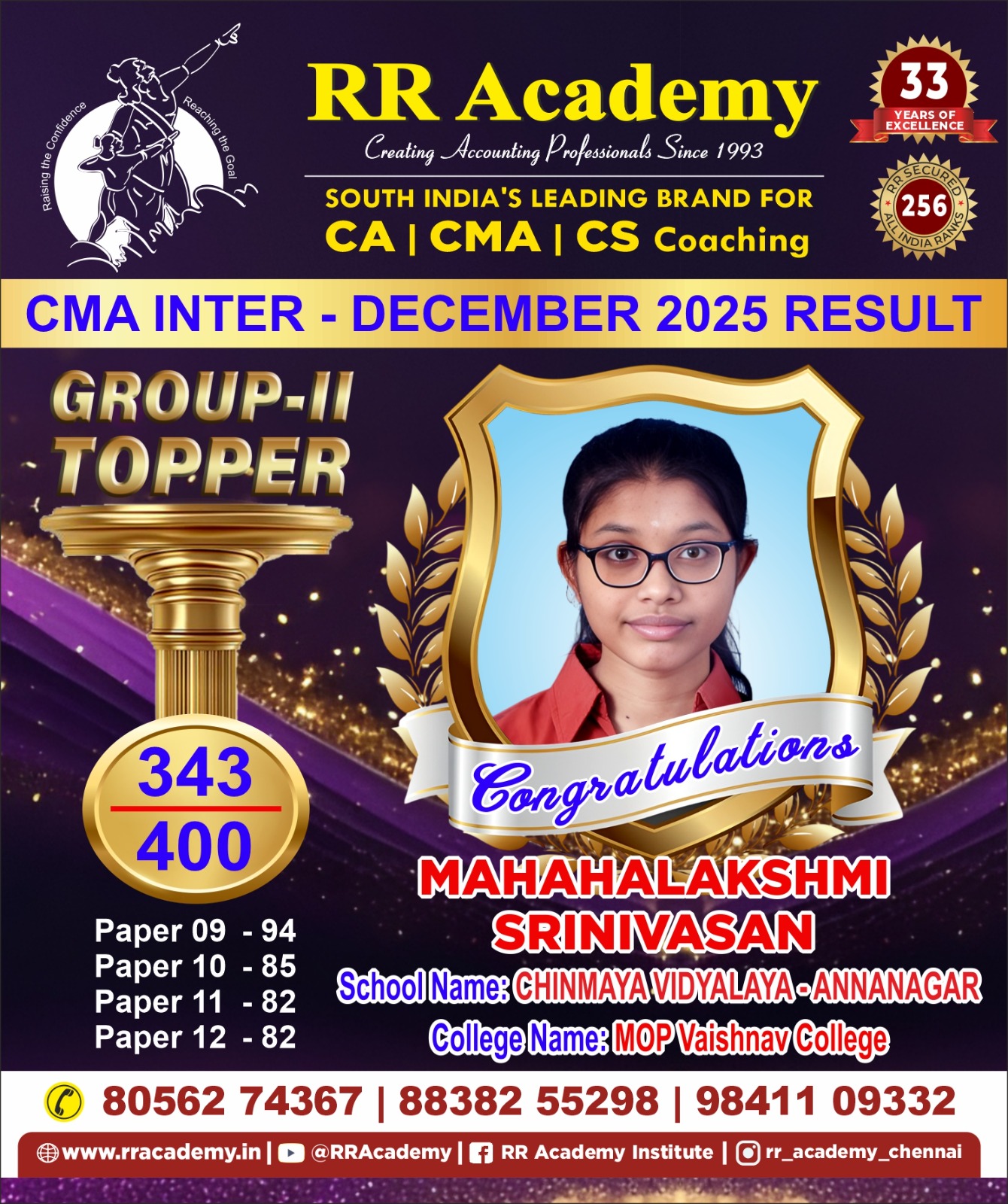 this year. Our hearty congratulations and best wishes for her future endeavours.