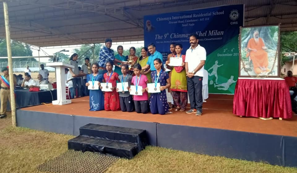 “All India Chinmaya Vidyalaya Foot Ball Championship 2019” conducted by Chinmaya international residential school at Coimbatore. Our students participated in the competition and “Kum. Krishna Shiva Priya” of class VIII won the “Best Goal Keeper” and our girls team came in a meritorious position in the tournament.