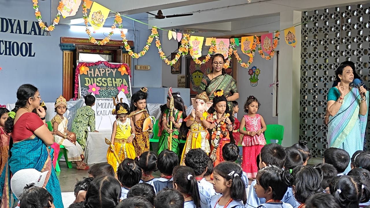 The youngest members of our school family brought devotion and delight to the festive season through their live Kolu presentations. On 17th September, the KG children charmingly enacted the episode of Gyanapazham, filling the stage with innocence and joy. The next day, 18th September, the Kindergarten students continued the celebrations with their own lively presentation, radiating enthusiasm and cultural pride. The colourful displays, cheerful participation, and devotional spirit of the children left the audience spellbound, making the celebrations a heartwarming blend of tradition and festivity.